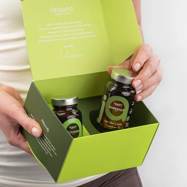 Zestaw Witamin i Minerałów Levann to wieloskładnikowa formuła w dwóch różnych opakowaniach, przeznaczona dla jednej osoby, aby zmaksymalizować ilość wartości odżywczych dostarczanych na cały dzień. Suplement jest dedykowany osobom w dojrzałym wieku, aktywnym fizycznie oraz ze skłonnością do szybkiego wypłukiwania się wartości odżywczych z organizmu.
