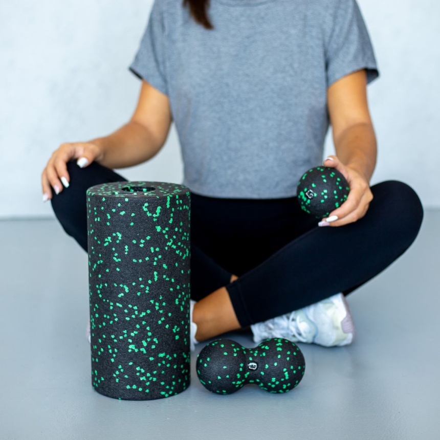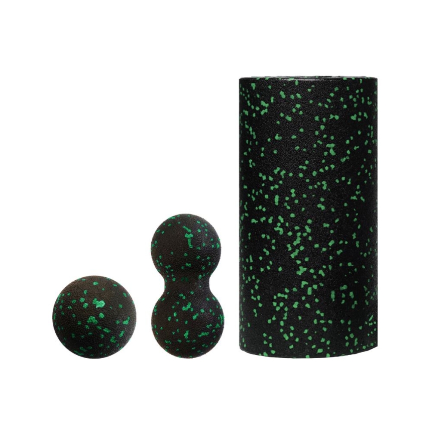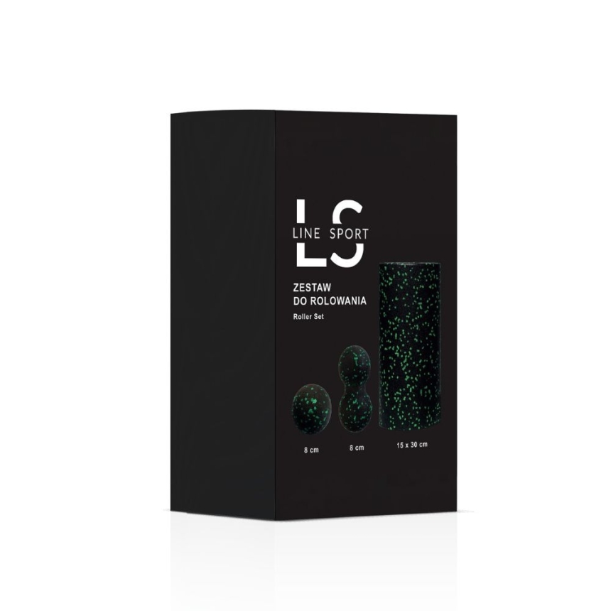 Zestaw do masażu i rolowania Line Sport – wałek, duoball i piłeczka (zielony)