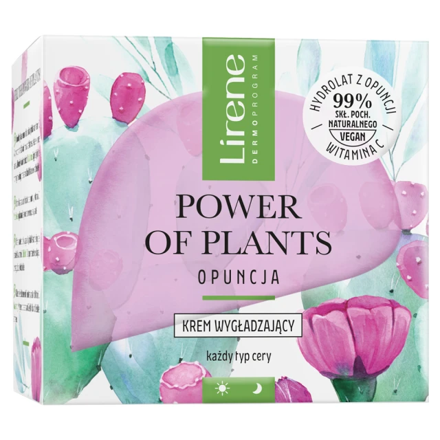 Ekspertki z Laboratorium Naukowego Lirene wprowadzają linię kosmetyków Power of Plants, łącząc moc natury z najnowszymi osiągnięciami nauki. Krem wygładzający opuncja to idealne rozwiązanie dla potrzeb skóry dojrzałej, powyżej 50 roku życia. Dzięki starannie dobranym ekstraktom, esencjom i olejom roślinnym, ten krem dostarcza skórze najcenniejsze składniki, jakie oferuje natura.