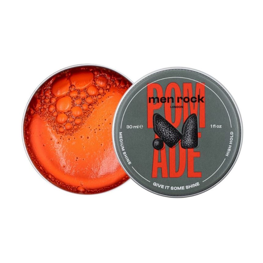 Men Rock Pomade High Hold Medium Shine to pomada, która dodaje włosom subtelnego blasku i pomaga stworzyć elegancką fryzurę o mocnym utrwaleniu. Sprawdza się przy gładkich, uporządkowanych stylach wykonywanych grzebieniem. Nadaje włosom średni połysk bez efektu tłustości, nie wysycha i pozostawia jedwabiste wykończenie.