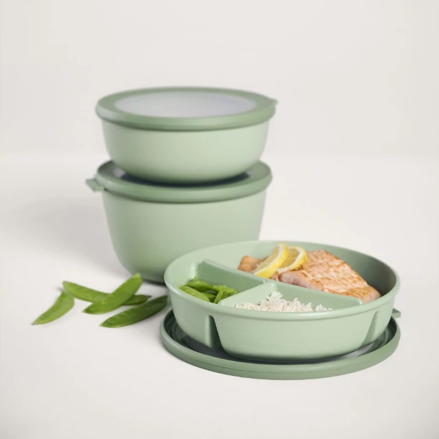 Trwałe tworzywo, z którego wykonana jest miska, cechuje się odpornością na uszkodzenia, co czyni ją idealną na pikniki i posiłki na świeżym powietrzu. Dzięki trójdzielnej konstrukcji spożywanie posiłków w drodze staje się łatwiejsze i bardziej przyjemne. Co więcej, miski można wkładać jedną w drugą, gdy są puste, oszczędzając miejsce w szafkach, a pełne miski można układać w stosy w lodówce czy zamrażarce.