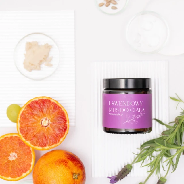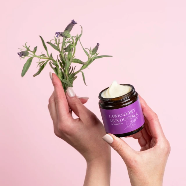 Lawendowy mus do ciała ma lekką, piankową konsystencję, która roztapia się pod wpływem ciepła dłoni. Produkt ten pokocha każda fanka lawendy i nie tylko! Po odkręceniu słoiczka czuć urzekający i odprężający zapach lawendy z nutą gorzkiej pomarańczy, pochodzący z naturalnych olejków eterycznych: