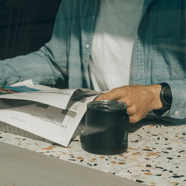 Kubek wyposażony jest w pokrywkę z przesuwnym zamknięciem ustnika Press-fit Slide Lid, która zabezpiecza napój przed chlapaniem, choć nie jest w pełni szczelna. Dzięki wygodnemu uchwytowi MiiR Camp Cup jest łatwy w przenoszeniu, a jego stal nierdzewna klasy 18/8 zapewnia trwałość oraz brak metalicznego posmaku.