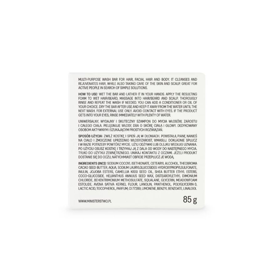 Ministerstwo Dobrego Mydła Zielona Herbata Shampoo Bar to multifunkcyjna kostka łącząca zalety szamponu i mydła w jednym produkcie, idealna do pielęgnacji ciała, włosów, a także męskiego zarostu. Dzięki kompaktowej formie świetnie sprawdzi się zarówno w domowej łazience, jak i podczas podróży, na siłowni czy w bagażu podręcznym, nie obciążając go.