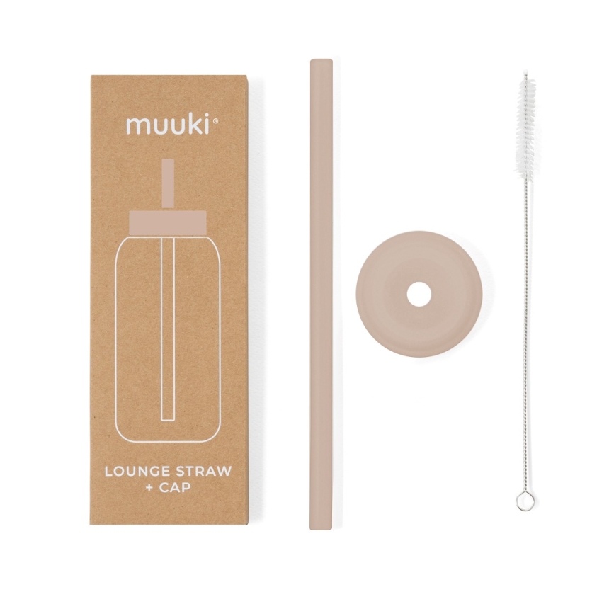 Utrzymanie zestawu w czystości jest bardzo proste – elementy można myć w zmywarce lub ręcznie pod bieżącą wodą. W komplecie znajduje się również praktyczna szczoteczka do czyszczenia, dyskretnie umieszczona wewnątrz słomki, co ułatwia jej przechowywanie i użytkowanie. Elegancki kolor DESERT ROSE i minimalistyczne wykończenie doskonale komponują się z designem butelek Muuki.
