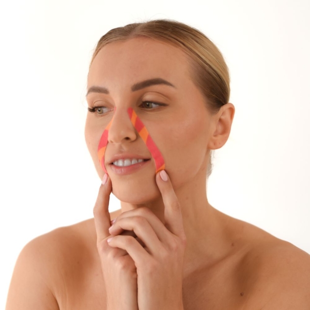 • 7 aplikacji (14 wyciętych taśm kinesio) na bruzdy mimiczne