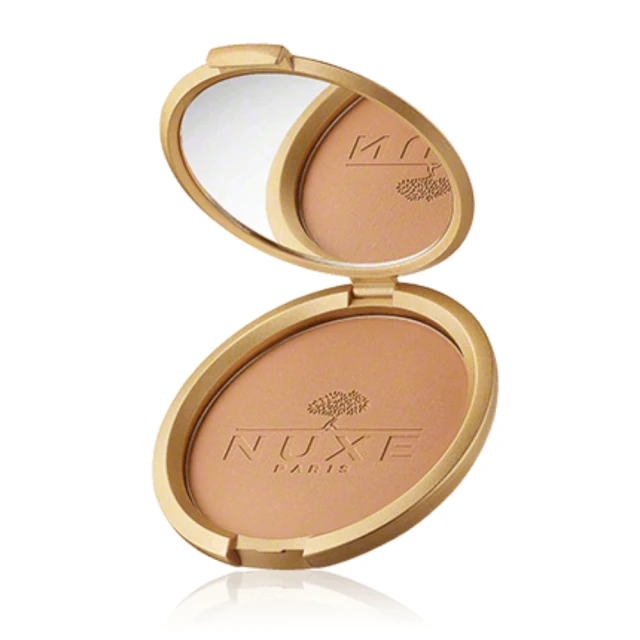Otul swoją skórę złocistym blaskiem z Nuxe Poudre Éclat Prodigieux – pudrem brązującym, który podkreśla naturalne piękno i dodaje promiennego wykończenia. To kosmetyk, który przenosi Cię w sam środek letniego słońca, bez względu na porę roku.