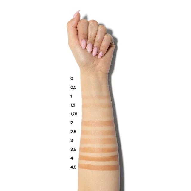 Aqua, Cyclopentasiloxane, Paraffinum Liquidum, Polyisobutene, Aluminum Starch Octenylsuccinate, Lauryl PEG/PPG-18/18 Methicone, Sodium Chloride, Glycerin, Propylene Glycol, Tocopheryl Acetate, Panthenol, Squalane, Triethoxycaprylylsilane, Aluminum Hydroxide, PEG-8, Tocopherol, Phenoxyethanol, Ethylhexylglycerin, Ascorbyl Palmitate, Ascorbic Acid, Citric Acid, [+/-: CI 77891, CI 77492, CI 77491, CI 77499].