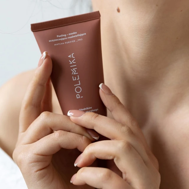 Oczyszczająco-rozświetlający peeling-maska 2w1 zaczyna działać aktywnie już od momentu aplikacji. Formuła oparta na ekstrakcie z kawioru roślinnego, papainie oraz drobinkach naturalnej celulozy delikatnie złuszcza martwe komórki naskórka, pozostawiając skórę rozjaśnioną i wygładzoną, bez podrażnień. Naturalny skwalan roślinny i biopolimer Fucocert® o silnych właściwościach nawilżających odbudowują warstwę hydrolipidową skóry, nadając jej miękkość i elastyczność. Dzięki zawartości oleju z awokado oraz bogatej w polifenole sproszkowanej zielonej herbaty Matcha, produkt odżywia i regeneruje skórę. Regularne stosowanie peelingu-maski sprawia, że skóra staje się doskonale wygładzona, świeża i promienna.