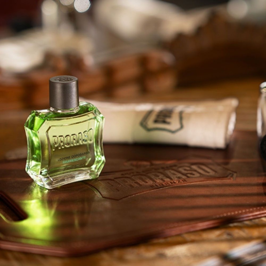 Lotion Proraso z eukaliptusem i mentholem to szybki sposób na ukojenie skóry po goleniu. Działa od razu po aplikacji. Łagodzi dyskomfort, odświeża i przywraca skórze równowagę. Ma klasyczną, lekką formułę, w której połączono olejek eukaliptusowy, menthol i oczar wirginijski. Razem dają efekt chłodzenia, tonizacji i lekkiego ściągnięcia, dzięki czemu skóra wygląda zdrowiej i szybciej wraca do formy.