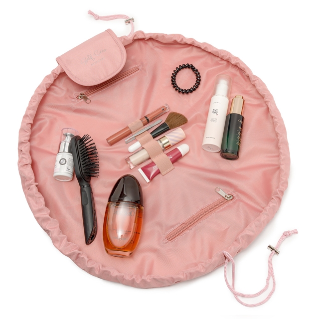 Złożona zajmuje niewiele miejsca, natomiast po rozłożeniu zaskakuje pojemnym wnętrzem, w którym z łatwością zmieścisz kosmetyki, akcesoria pielęgnacyjne czy przedmioty o nieregularnych kształtach. Dzięki konstrukcji w formie worka wszystko masz pod ręką – bez potrzeby przeszukiwania zawartości.