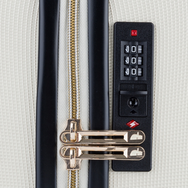 Wbudowany zamek szyfrowy chroni zawartość bagażu, a funkcjonalne wnętrze umożliwia estetyczne ułożenie ubrań i akcesoriów, zapobiegając ich przesuwaniu czy gnieceniu.