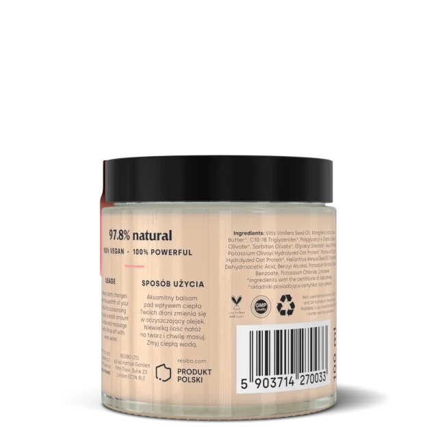 Aksamitny balsam pod wpływem ciepła Twych dłoni staje się oczyszczającym olejkiem. Niewielką ilość wmasuj w skórę twarzy, a następnie usuń ciepłą wodą. Demakijaż jeszcze nigdy nie był tak przyjemny.
