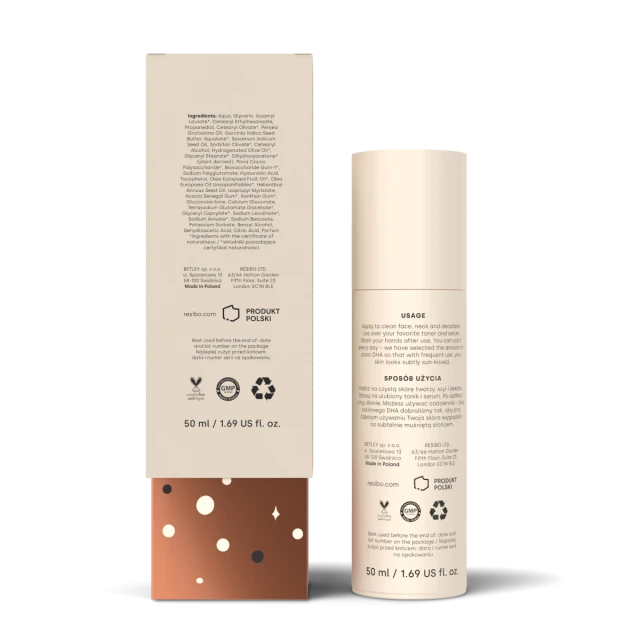 Regularne stosowanie kremu pozwala utrwalić te efekty, poprawiając wygląd skóry na dłużej. Dodatkową zaletą jest subtelna opalenizna, która stopniowo pojawia się dzięki zawartości roślinnego dihydroksyaceton (DHA). Substancja ta bezpiecznie i naturalnie buduje opaleniznę, nadając skórze zdrowy, muśnięty słońcem wygląd .