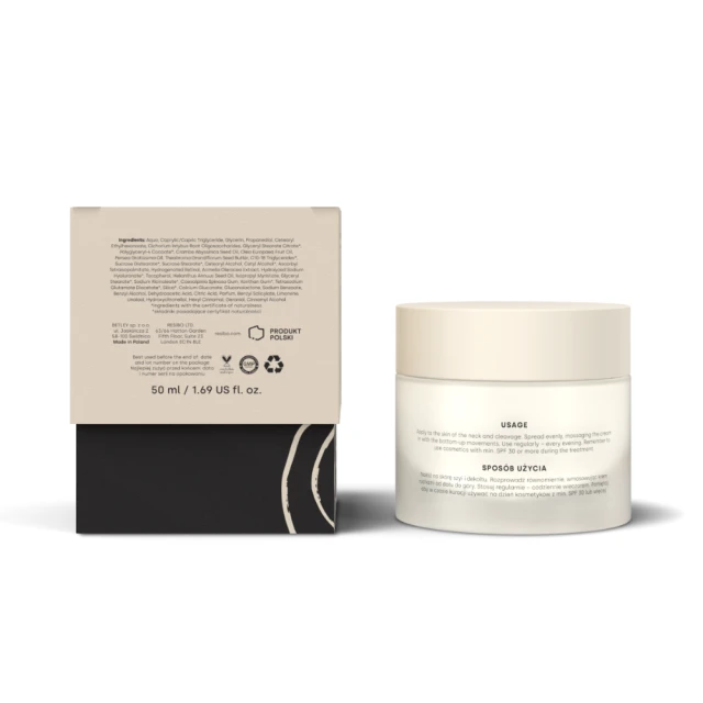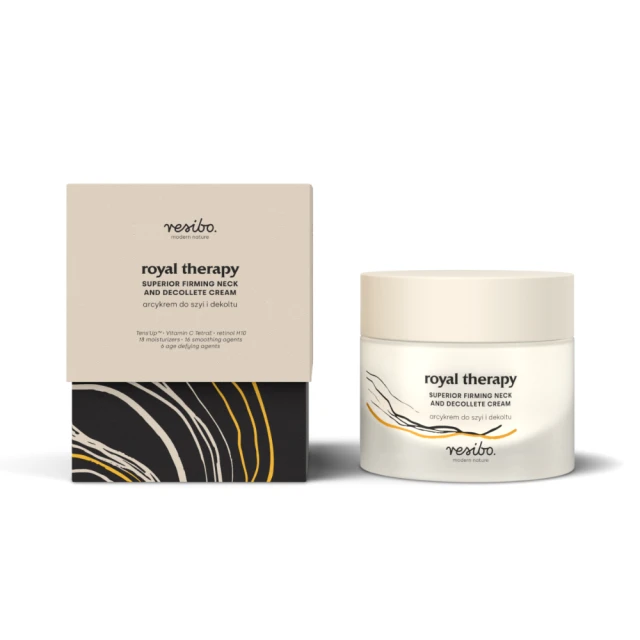 Resibo Royal Therapy Neck & Decollete Cream to skoncentrowany krem stworzony specjalnie z myślą o delikatnej skórze szyi i dekoltu. Zapewnia intensywne modelowanie, poprawia koloryt oraz redukuje przebarwienia, przywracając skórze młodszy i bardziej jędrny wygląd. Idealny dla osób, które chcą uzupełnić swoją codzienną pielęgnację o kompleksową troskę o te często pomijane obszary.