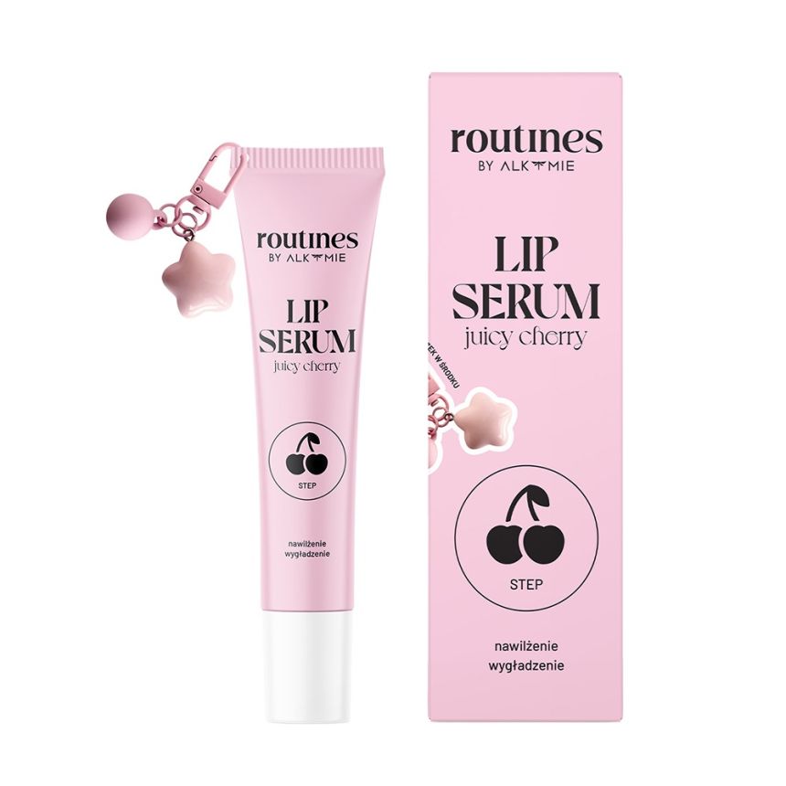 Routines Lip Serum Juicy Cherry to nawilżająco - wygładzający błyszczyk do ust o przyjemnym, wiśniowym smaku. Formuła intensywnie pielęgnuje wargi, przywracając im miękkość i gładkość, a regularne stosowanie chroni przed przesuszeniem i szkodliwym działaniem czynników zewnętrznych. Serum nadaje ustom subtelny blask i komfort przez cały dzień.