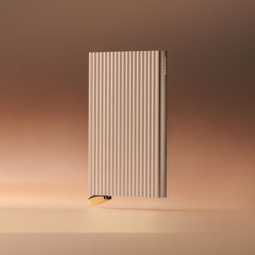 Secrid Cardprotector Fluted+ to odświeżona wersja klasycznego etui, zaprojektowana z myślą o większej trwałości, lepszym mechanizmie blokowania kart i nowoczesnym wyglądzie. Powstał z lekkiego aluminium, które dobrze chroni karty przed zginaniem i przypadkowymi uszkodzeniami, a jednocześnie blokuje sygnał RFID, zabezpieczając dane przed niechcianym odczytem.