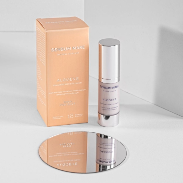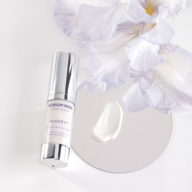 Krem pod oczy Algoeye stworzony został z myślą o zaawansowanej i naturalnej pielęgnacji delikatnej skóry pod oczami. Unikalne połączenie wody z lodowca norweskiego, siedmiu rodzajów alg morskich oraz ekstraktów i olejków roślinnych wpływa na zmniejszenie obrzęków oraz cieni pod oczami. Niskocząsteczkowy kwas hialuronowy wypełnia zmarszczki od środka oraz znacząco wpływa na ich zmniejszenie. Wyjątkowy składnik Corneosticker tworzy po aplikacji „drugą skórę”, działając jak aktywny opatrunek, odnawia i poprawia wygląd skóry, wygładza, rozjaśnia i redukuje niedoskonałości. Kofeina zawarta w kremie zwiększa mikrokrążenie co widocznie wpływa na redukcję obrzęków i oznak zmęczenia. Kompleks polisacharydów uzyskiwany z glonów stanowi silną kosmetyczną substancję czynną wpływającą na znaczącą redukcję cieni pod oczami. Niacinamide (wit. B3) zawarta w kremie jest cenionym składnikiem aktywnym wpływającym na syntezę kolagenu, działającym odmładzająco i przeciwzmarszczkowo. Olejki jojoba oraz olejek z awokado łagodzą podrażnienia, nawilżają, działają przeciwzapalnie, neutralizują działanie wolnych rodników odpowiedzialnych za szybsze powstawanie zmarszczek. Zielony kawior, unikalna alga, wspomaga działanie przeciwzmarszczkowe a wyciąg z paproci z Nowej Zelandii działa liftingująco. Każda porcja kremu ALGOEYE niweluje oznaki zmęczenia pod oczami oraz wpływa na odmłodzenie spojrzenia. Krem stanowi idealny wybór dla osób poszukujących kosmetyku o bogatej i zaawansowanej formule.