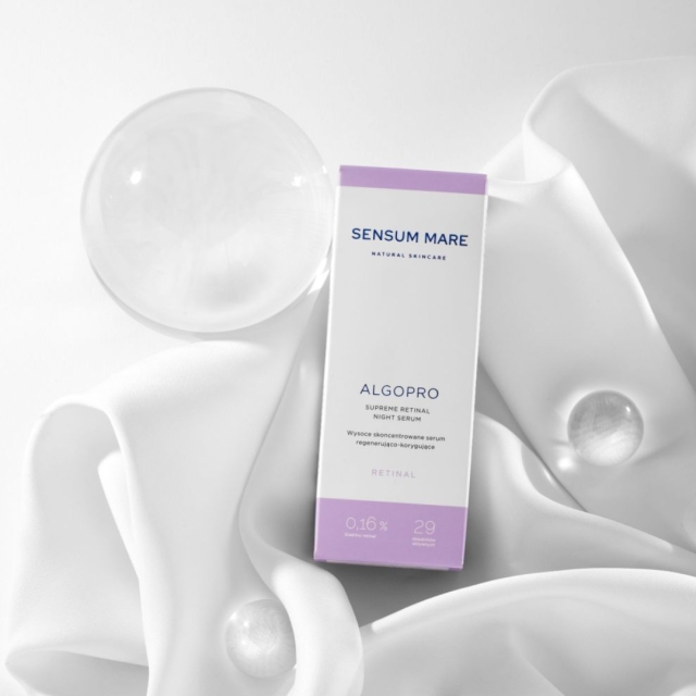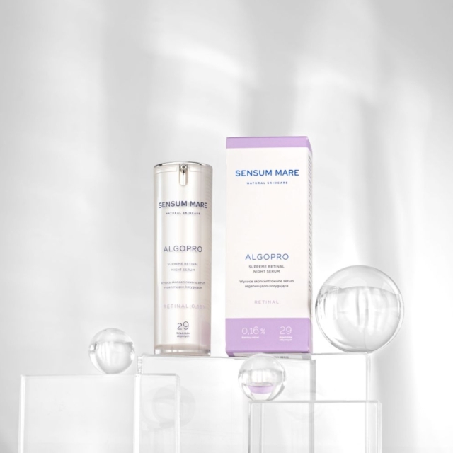 Nałóż serum wieczorem na oczyszczoną skórę twarzy, szyi i dekoltu omijając okolice oczu i ust. Odczekaj około 30 minut i nałóż na skórę krem z serii ALGORICH/ ALGOLIGHT lub maskę nocną ALGOMASK. Kurację rozpocznij od niższego stężenia – 0, 08% retinalu, wprowadzaj go do pielęgnacji stopniowo. Na początku stosowania aplikuj produkt 2 razy w tygodniu, aby przygotować skórę do działania retinalu, po dwóch tygodniach możesz stosować produkt co drugi wieczór. Podczas kuracji retinalem pamiętaj o ochronie przeciwsłonecznej i unikaniu ekspozycji na słońce w ciągu dnia, ponieważ produkty z retinalem zwiększają wrażliwość skóry na promienie słoneczne. Do ochrony przeciw promieniom UV rekomendujemy innowacyjną emulsję ochronną ALGODROPS SPF 50. Serum z retinalem rekomendujemy zużyć w ciągu 6 miesięcy od otwarcia.