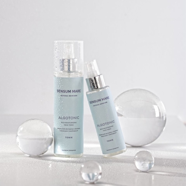 Bogaty tonik do twarzy Algotonic stanowi pierwszy krok w codziennej pielęgnacji skóry twarzy. Unikalne połączenie wody z lodowca norweskiego i pięciu rodzajów alg morskich odżywia skórę dostarczając jej witamin, minerałów i pierwiastków śladowych. Niskocząteczkowy kwas hialuronowy przenika warstwę rogową skóry i dogłębnie ją nawilża oraz zapobiega jej wysuszeniu. Organiczna woda z chabru bławatka ma działania tonizujące, przeciwzapalne i łagodzące. ALGOTONIC to doskonały wybór dla osób poszukujących bogatych w składniki odżywcze kosmetyków.