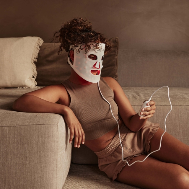 Maska emituje światło LED w czterech długościach fal, z których każda działa na inne potrzeby skóry: