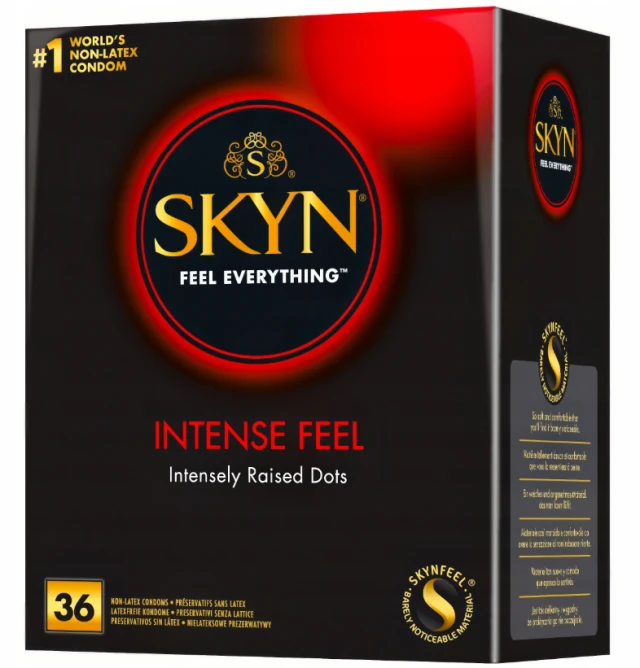Jeszcze intensywniejsze doznania ze SKYN Intense Feel. Fale intensywnych wypustek zapewniają wyjątkową stymulację, a nielateksowy materiał SKYNFEEL naturalne odczucia.