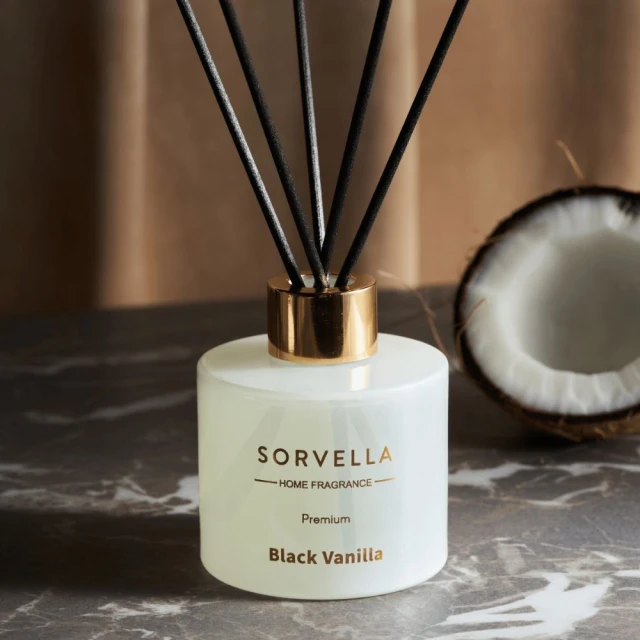 Sorvella Perfume Black Vanilla Premium Home Fragrance to elegancki perfumowany dyfuzor, który wprowadza do Twojego wnętrza ciepły, kojący zapach czarnej wanilii, kokosa i cytrusów. Ta kremowa i słodka kompozycja otula przestrzeń, wypełniając ją relaksującym, spokojnym aromatem, idealnym do chwili wytchnienia po długim dniu.