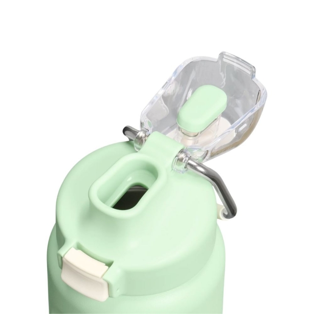 Dzięki podwójnej izolacji próżniowej butelka utrzymuje zimną temperaturę napojów do 12 godzin, a ciepłą przez 8 godzin, zapewniając długotrwały komfort użytkowania niezależnie od pory dnia. System szybkiego otwierania z metalowym zapięciem i przyciskiem pozwala na łatwe picie jednym ruchem, bez konieczności odkręcania pokrywki. Butelka jest całkowicie szczelna, więc możesz bez obaw wrzucić ją do torby czy plecaka.