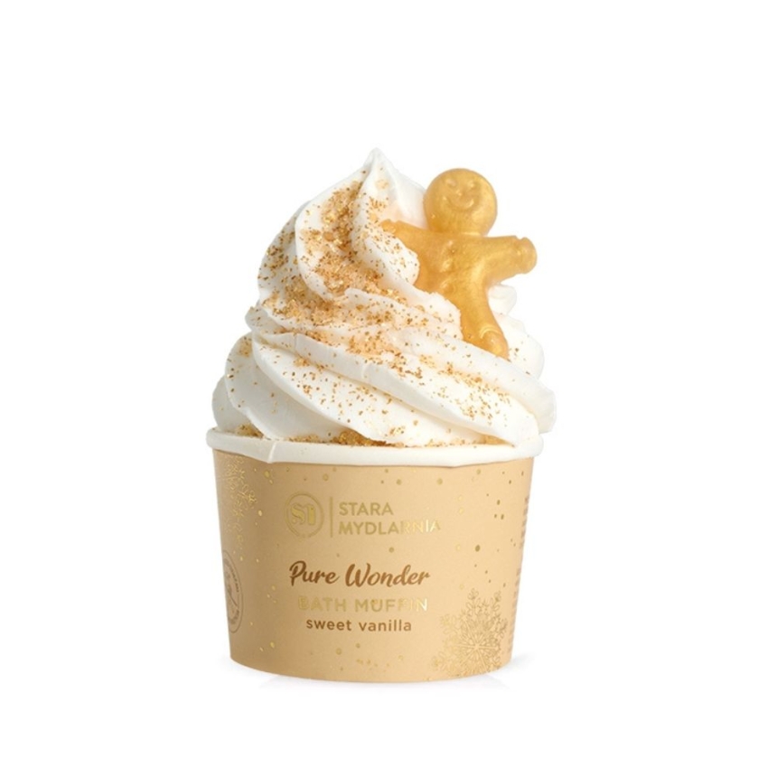 Stara Mydlarnia Pure Wonder Sweet Vanilla Bath Muffin to muffinka do kąpieli o słodkim, waniliowym aromacie, która zamienia codzienną kąpiel w mały rytuał domowego spa. Zapach wanilii otula ciało, wprowadzając przyjemny, relaksujący nastrój i poprawiając samopoczucie.