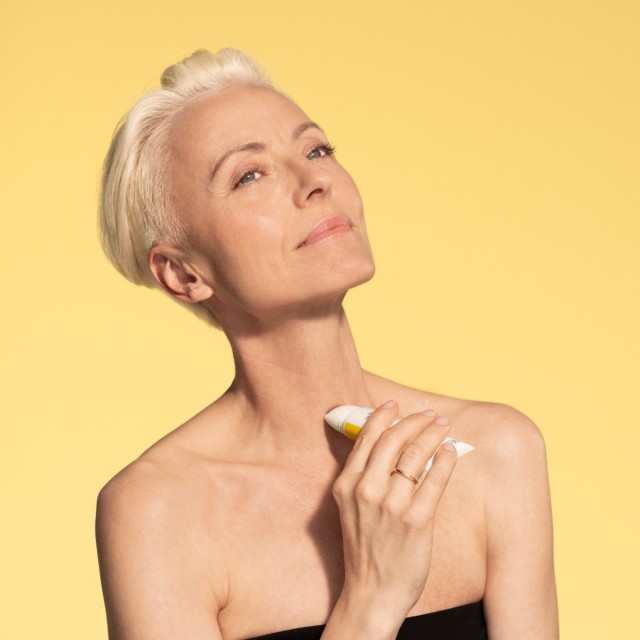 Wysoka technologia w wygładzaniu i napinaniu w jednym produkcie. Wmasuj to bogate w peptydy serum w skórę, aby poprawić wygląd linii poziomych na szyi oraz wzmocnić napięcie skóry wzdłuż linii żuchwy. Problem w tych obszarach jest znany jako Tech Neck TM, czyli widoczne oznaki starzenia spowodowane nieustannym patrzeniem w dół na urządzenia elektroniczne. Chłodzący roller optymalizuje wchłanianie serum i minimalizuje ciągnięcie delikatnej skóry szyi dla widocznie gładszego i bardziej napiętego profilu.