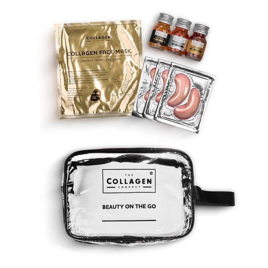 The Collagen Company Kosmetyczka Beauty Set On The Go to elegancki i praktyczny zestaw stworzony z myślą o osobach aktywnych, podróżujących i ceniących wygodę w pielęgnacji. To kompletny rytuał urody zamknięty w kompaktowej kosmetyczce, który pozwala zadbać o siebie zarówno od środka, jak i od zewnątrz, niezależnie od miejsca i sytuacji.