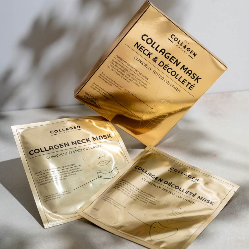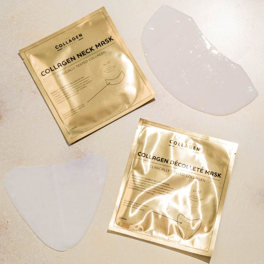 The Collagen Company COLLAGEN NECK & DÉCOLLETÉ MASK to kolagenowa maska stworzona specjalnie z myślą o skórze szyi i dekoltu, która szybciej traci jędrność i elastyczność niż inne partie twarzy. Zaawansowana formuła oparta na kolagenie Verisol®, kwasie hialuronowym, witaminach oraz probiotykach intensywnie nawilża, wygładza i wspiera regenerację skóry w tych wymagających obszarach.