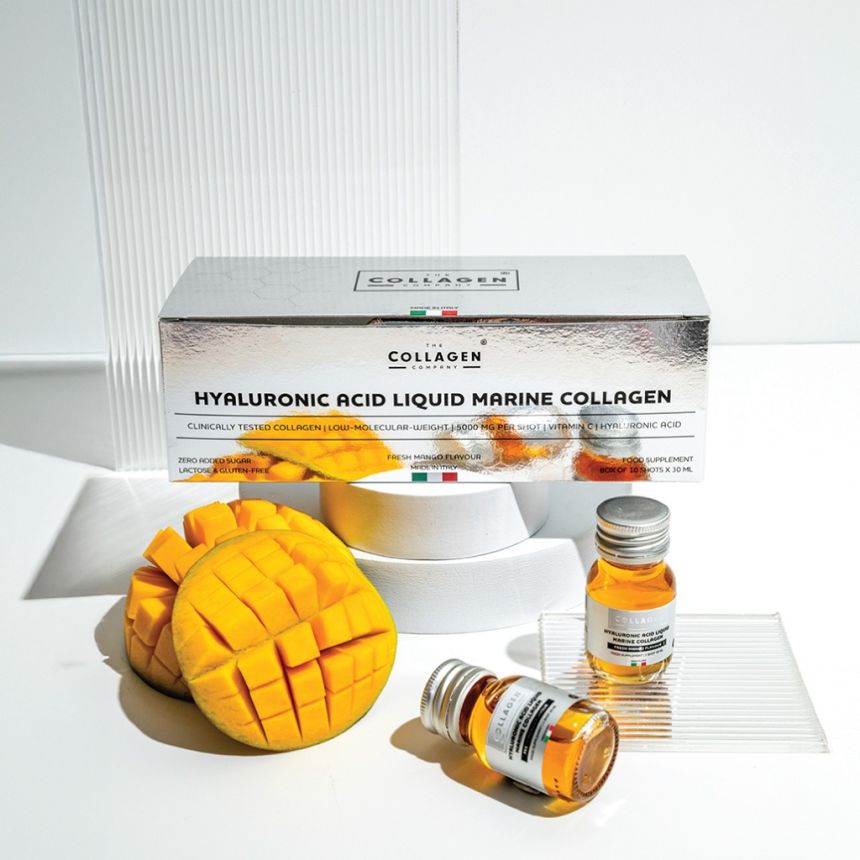 LIQUID MARINE COLLAGEN x POWER HYALURONIC to suplement dla najbardziej wymagających – łączy skuteczność, wygodę stosowania i przyjemny smak mango, który ułatwia codzienną suplementację.