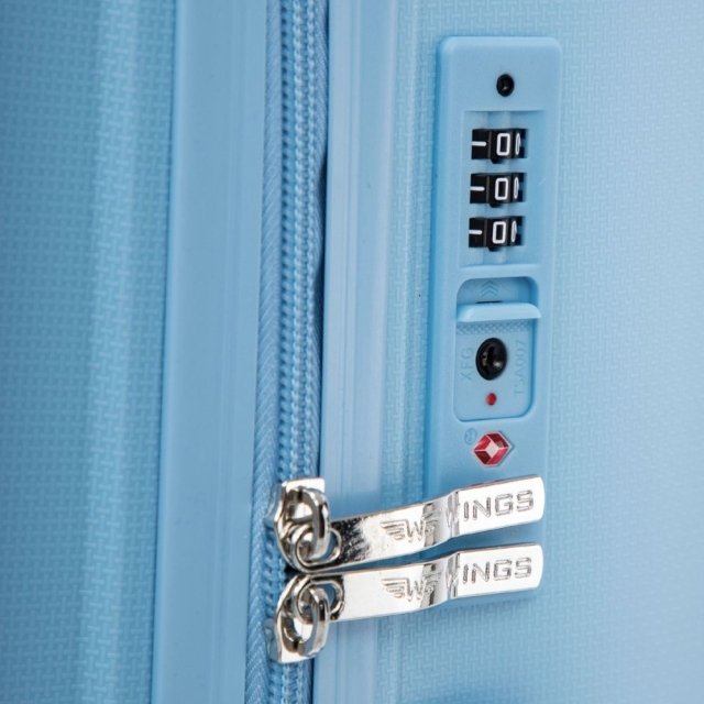 Cała linia Cockatiel została zaprojektowana z dbałością o spójność wizualną. Każdy element – od kółek, przez zamki i uchwyty, aż po teleskopową rączkę – idealnie komponuje się kolorystycznie z korpusem walizki. Subtelne logo WINGS i starannie zaprojektowane detale podkreślają nowoczesny i elegancki charakter tego modelu.