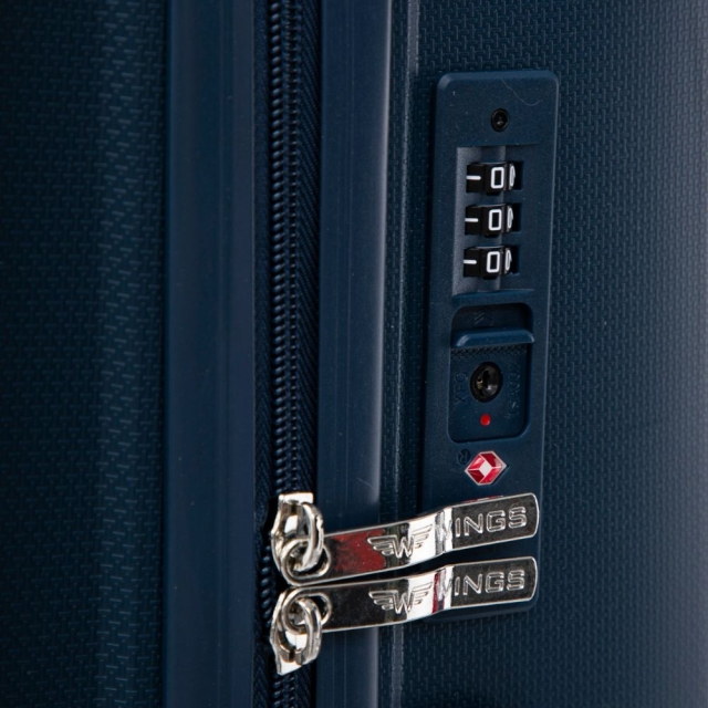 Walizka posiada dwukomorowe wnętrze z dodatkową kieszenią na suwak oraz pasy mocujące, które zabezpieczają ubrania i akcesoria podczas transportu. Całość wykończona została elegancką podszewką z logiem WINGS – znak jakości i dbałości o detale.