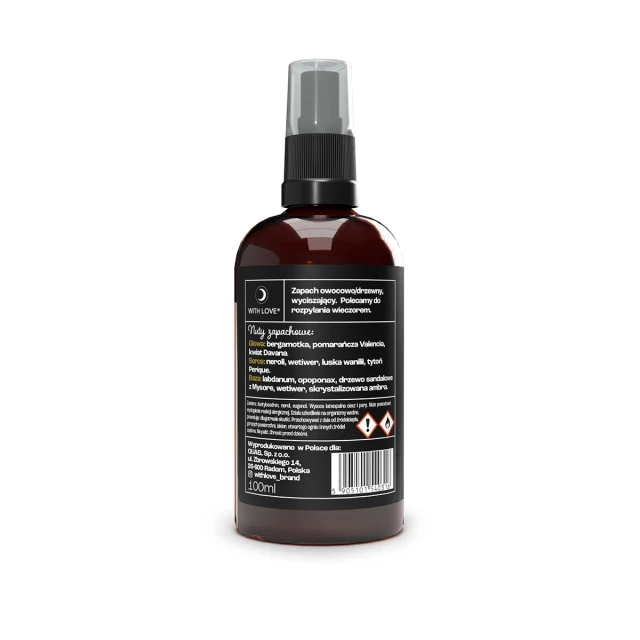 Zapach do domu w sprayu Miłość / Energia Ognia to wyjątkowy produkt oparty na nutach zapachowych bergamotki, pomarańczy, łusek wanilii i drzewa sandałowego, który wniesie do Twojego wnętrza nie tylko ciepło i ognistą energię, ale także będzie wpływał na Twoje emocje i nastroje, przypominając o sile miłości w życiu. Wprowadzając ten zapach ognia do swojego domu, nadasz mu charakterystyczną aurę żywiołu, która może działać jak iskra, pobudzając Twoją wyobraźnię i pasje. Jeśli pragniesz odzyskać poczucie wolności i przenieść się do świata pasji oraz pozytywnej energii, rozpyl ten zapach w swoim wnętrzu, by przywołać wspomnienia o ogniskach, ciepłych wieczorach przy kominku i romantycznych chwilach spędzonych wśród bliskich osób.