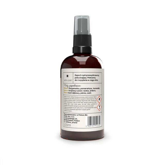 Zapach do domu w sprayu Ochrona / Energia Wody to wyjątkowy produkt, który wniesie do Twojego wnętrza nuty zapachowe pomarańczy, bergamotki, piżmu oraz brązowego cukru. Jego głównym atutem jest łatwa aplikacja - kilka rozpyleń i Twój dom napełni się wspaniałym aromatem, pobudzającym Twój organizm i dodającym energii. Uniwersalność, subtelność, delikatność i świeżość zapachu wody sprawiają, że idealnie komponuje się z różnymi pomieszczeniami. Jeśli pragniesz zastrzyku energii i lubisz otaczać się przyjemnymi zapachami, spraw, by Twój dom stał się miejscem, gdzie ten aromat przywołuje miłe wspomnienia, tworząc rytuał, który odświeża zarówno Twoje otoczenie, jak i duszę.