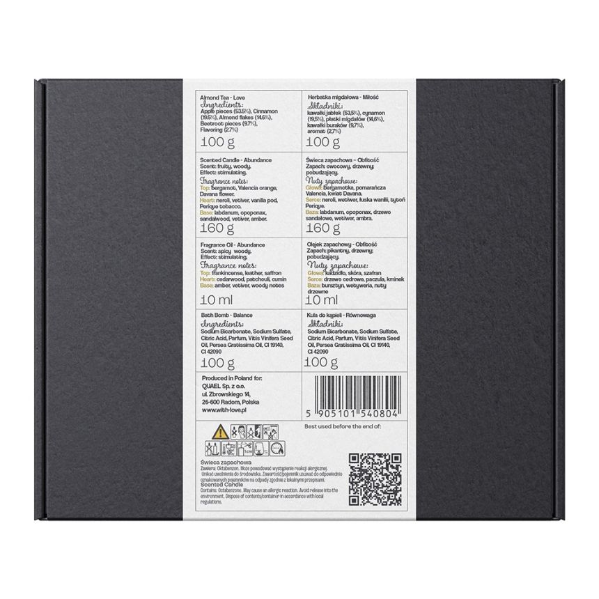 With Love Zestaw aromaterapeutyczny dla zodiakalnego Barana to propozycja stworzona z myślą o osobach pełnych energii, pasji i determinacji. Starannie dobrane elementy wspierają zarówno pobudzenie zmysłów, jak i chwilę wyciszenia po intensywnym dniu. Kompozycje zapachowe pomagają odnaleźć równowagę pomiędzy dynamicznym stylem życia a potrzebą relaksu, tworząc harmonijną atmosferę sprzyjającą regeneracji i skupieniu.