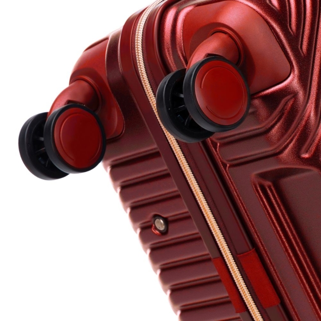 Cztery podwójne, zwrotne kółka wykonane z tworzywa ABS z elastyczną powłoką działają jak precyzyjne łożyska w luksusowym zegarku – sprawiają, że walizka płynnie sunie po każdej powierzchni. Wysuwany uchwyt teleskopowy oraz gumowa rączka boczna pozwalają na wygodne prowadzenie i przenoszenie bagażu.