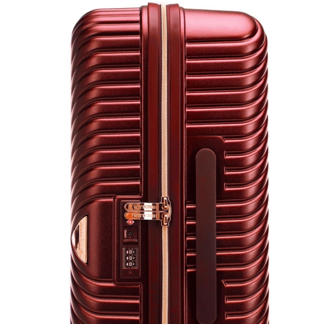 Szykowna, pojemna i niezawodna – ta duża walizka z kolekcji GL Style to propozycja dla kobiet, które oczekują od bagażu czegoś więcej niż tylko funkcjonalności. Wykonana z trwałego polikarbonu o matowym wykończeniu, przyciąga wzrok subtelnym połyskiem oraz eleganckimi okuciami. Jej wyjątkowy design to połączenie geometrycznych paseczków i kobiecej estetyki, które wpisują się w najnowsze trendy mody.