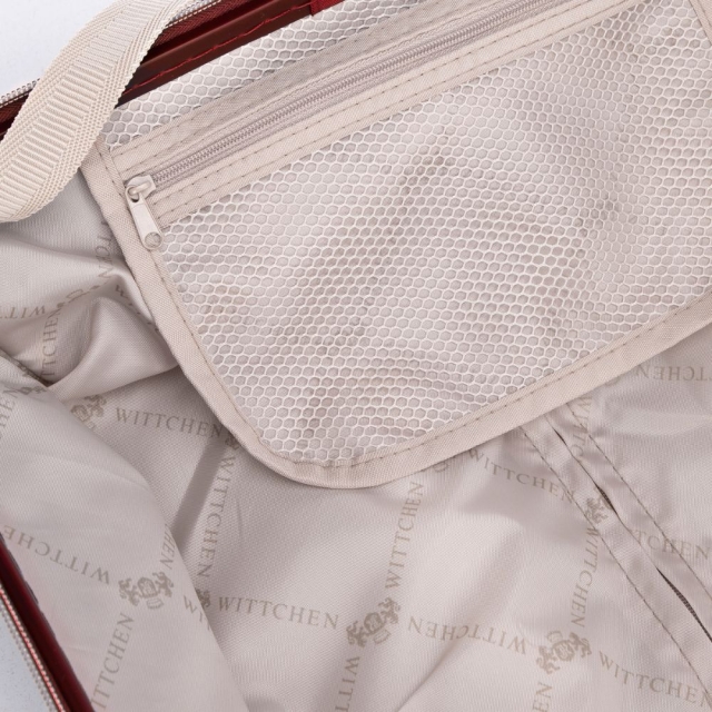 W środku walizki znajdziesz beżową podszewkę z logo WITTCHEN – subtelny detal, który przypomina elegancką podszewkę płaszcza od projektanta. Przemyślany układ komór i kieszeni ułatwia organizację: