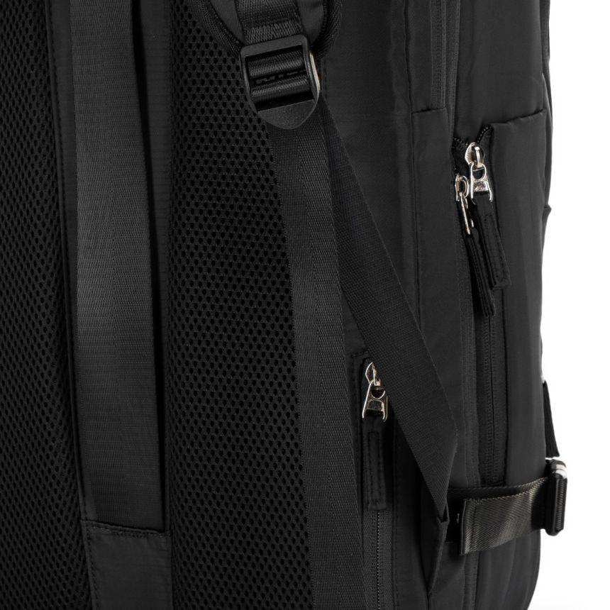 Trójkomorowe wnętrze ułatwia organizację rzeczy. Wyściełana kieszeń na laptopa do 17" skutecznie zabezpiecza sprzęt i stabilizuje go podczas ruchu. Główna komora otwierana jak walizka została wyposażona w pasy zabezpieczające oraz elastyczne kieszenie, co pozwala zachować porządek i szybki dostęp do zawartości. Możliwość poszerzenia plecaka o 4 cm zwiększa jego pojemność i daje większą elastyczność podczas pakowania.