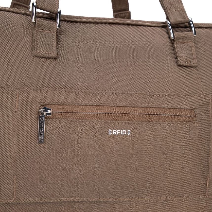 Komfort użytkowania zapewnia regulowany pasek na ramię z miękką nakładką oraz wygodne uchwyty do noszenia w dłoni. Pasek do zamocowania na walizce pozwala łatwo przemieszczać się po lotnisku. Całość uzupełnia kieszeń z ochroną RFID, która zwiększa bezpieczeństwo przechowywanych kart i dokumentów.