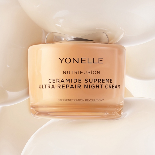 NOWA DEFINICJA PIELĘGNACJI ANTI-AGING Nowoczesna pielęgnacja anti-aging według YONELLE zaczyna się od podstaw: wzmocnienia bariery ochronnej skóry i jej biologicznej równowagi. Seria NUTRIFUSÍON, inspirowana korneoterapią i bazująca na CERAMIDACH SUPREME, skutecznie regeneruje naskórek i wspiera naturalny mikrobiom zdrowej skóry. Dzięki działaniu ukierunkowanemu na rekonstrukcję bariery ochronnej, wzmocnienie warstwy rogowej i ograniczenie TEWL (przeznaskórkowej utraty wody), skóra odzyskuje zdolność do zatrzymywania wilgoci, staje się bardziej odporna i może być stymulowana składnikami aktywnymi.