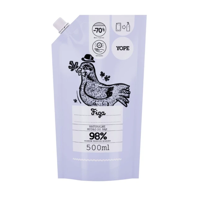 Yope Figa Liquid Hand Soap Refill Pack to ekonomiczne uzupełnienie naturalnego mydła do rąk o pięknym, świeżym i owocowym zapachu figi. Refill to idealne rozwiązanie dla osób, które chcą zadbać o środowisko, ograniczając zużycie plastiku, a przy okazji zapewnić sobie zapas ulubionego kosmetyku.
