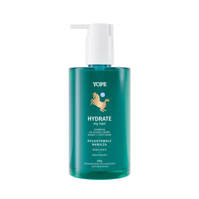 Yope Hydrate Shampoo to szampon, który dostarcza intensywnego nawilżenia włosom i suchej skórze głowy, pozostawiając je lśniące, gładkie i pełne sprężystości. Dzięki łagodnej formule i starannie dobranym składnikom, produkt skutecznie oczyszcza, jednocześnie dbając o równowagę hydrolipidową skóry. Włosy stają się miękkie, elastyczne i nawilżone, a efekt puszenia i elektryzowania zostaje zredukowany.