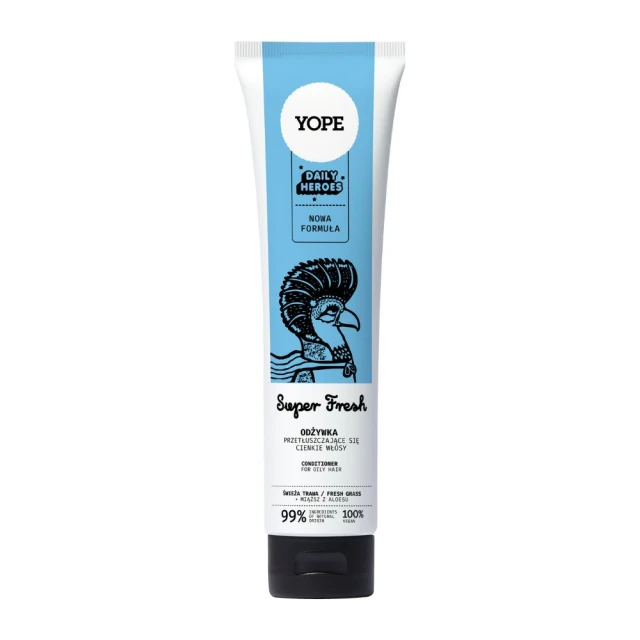 Odżywka Yope Świeża Trawa idealnie współpracuje z szamponem z tej samej linii, dzięki czemu przetłuszczające się włosy odzyskują lekkość i świeżość bez ryzyka przesuszenia skóry głowy.